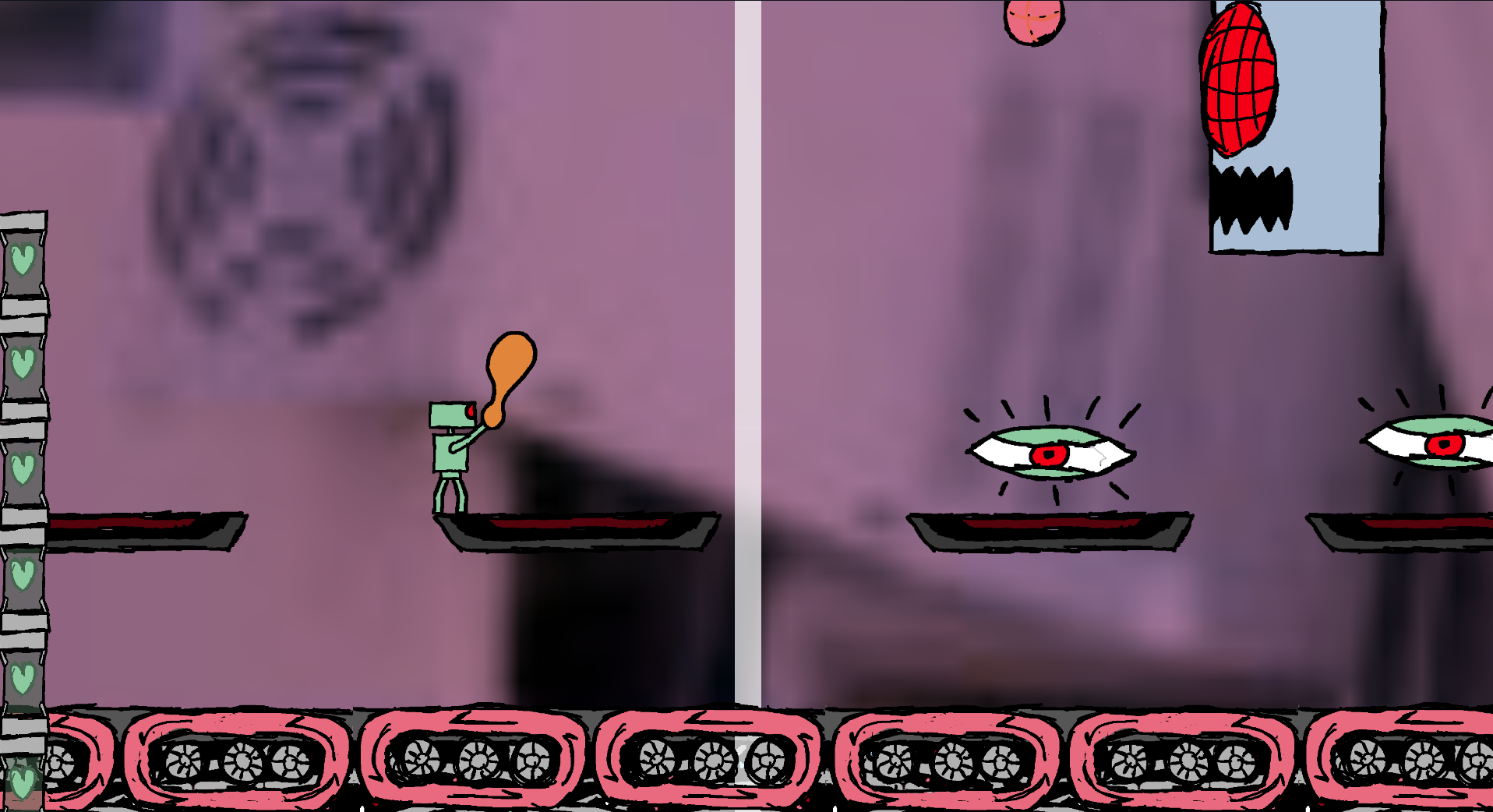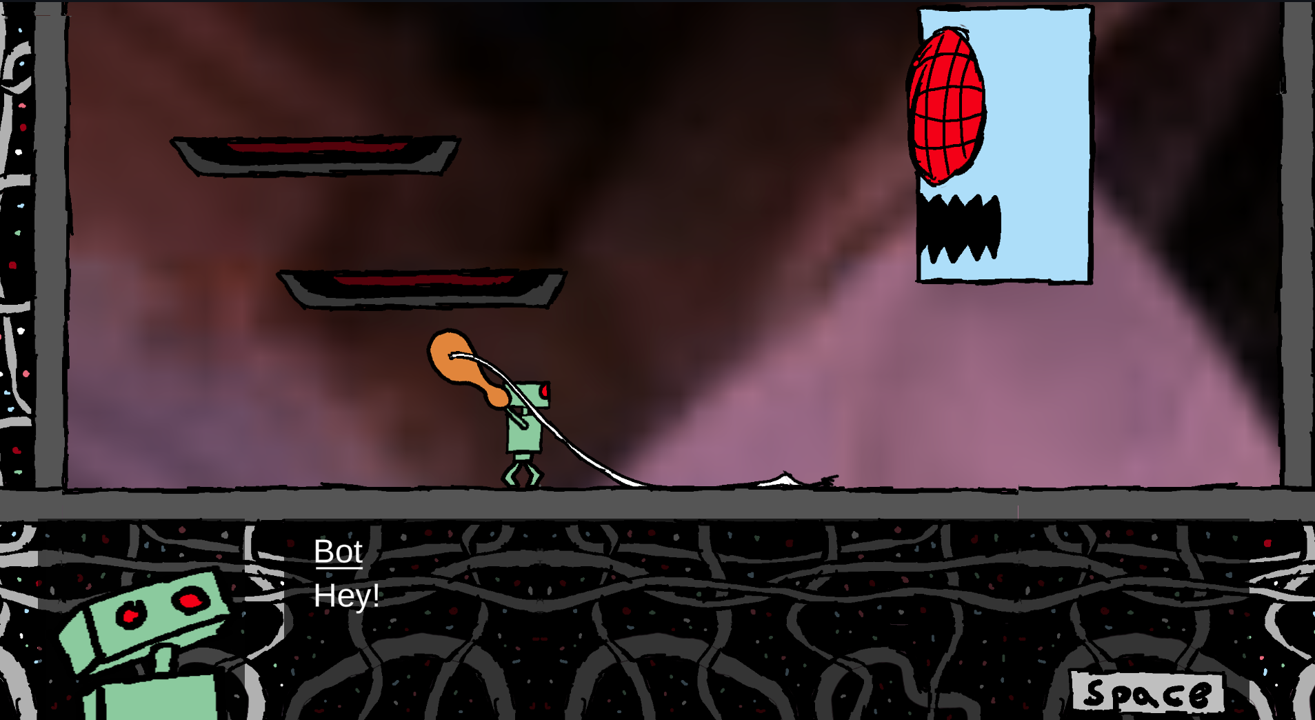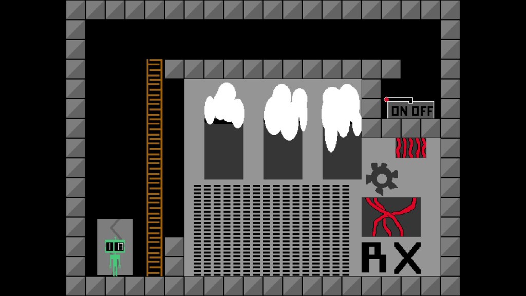 Although this is a platformer, there’s no jumping. RCRT ascends by climbing ladders.