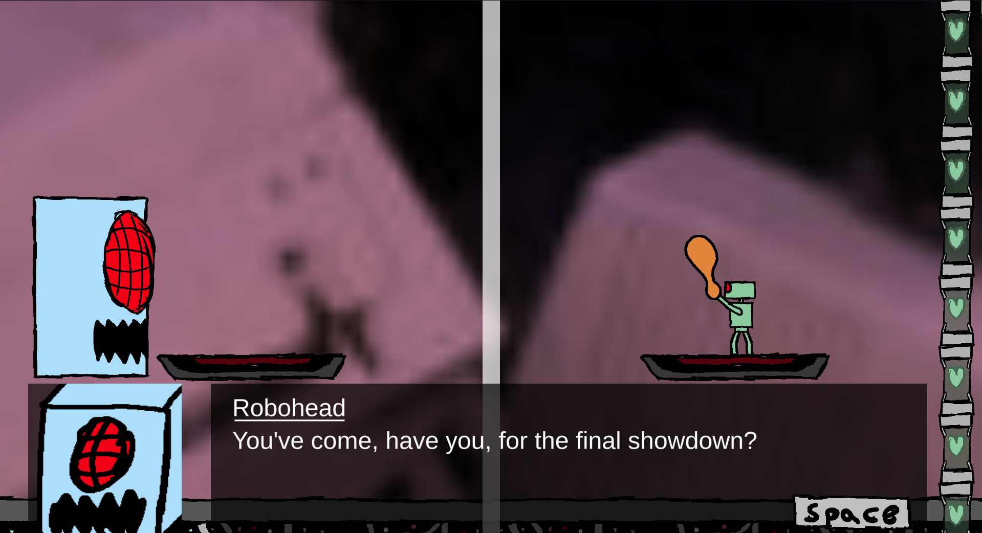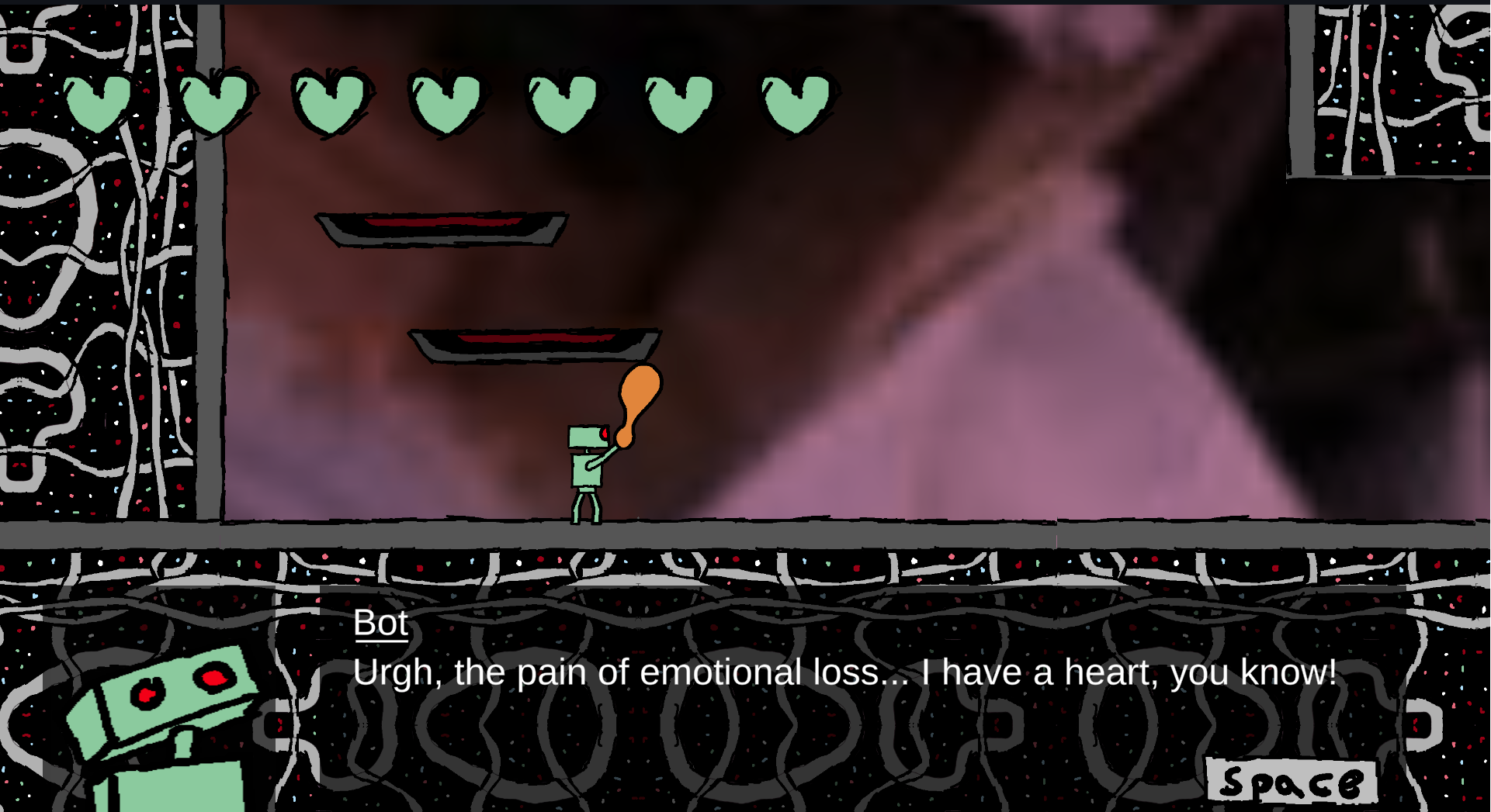 The player has this amount of time to complete the game, but if RCRT’s battery dies, they respawn at the beginning. At any time, the player can check how much time they have left by looking at RCRT’s face, which doubles as a screen display.