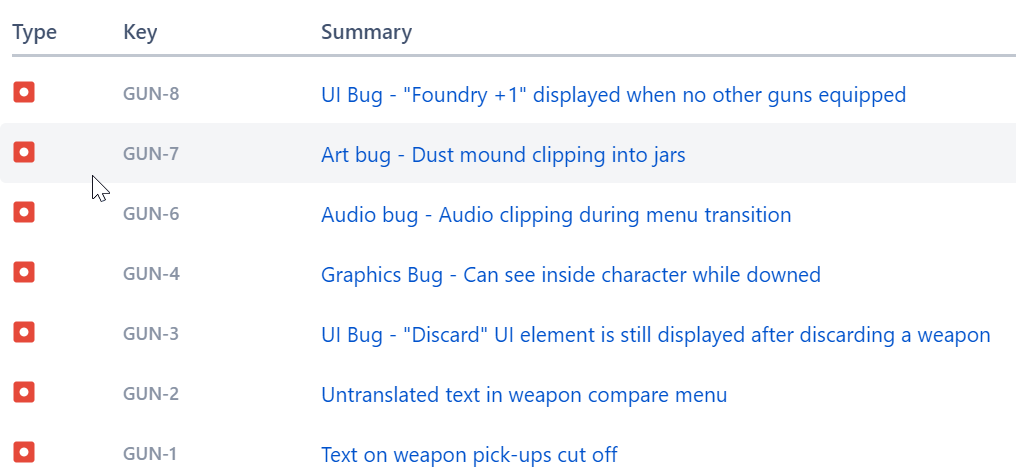 Below is a list of bug reports for Gunfire Reborn. I create my bug reports in Jira before sending them off to the developers.