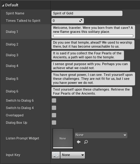Additionally, I helped implement many of the non-environmental game assets and worked out several bugs and issues. I replaced the default player character’s model with a custom model created by our 3D artist and worked out a few issues to ensure it was functional. I also placed the non-playable characters in the game and scripted their interactivity.
