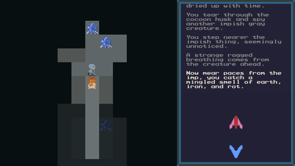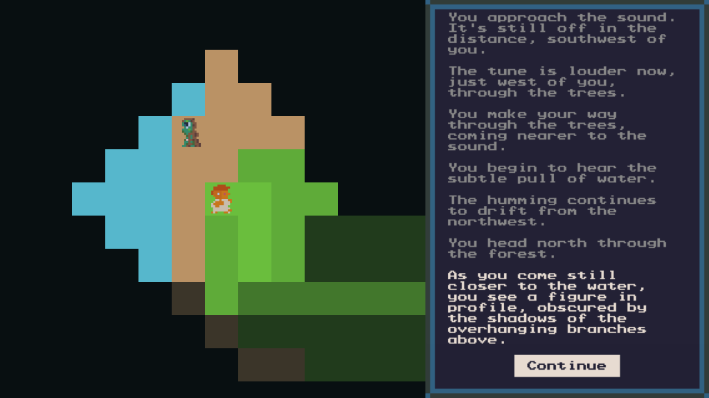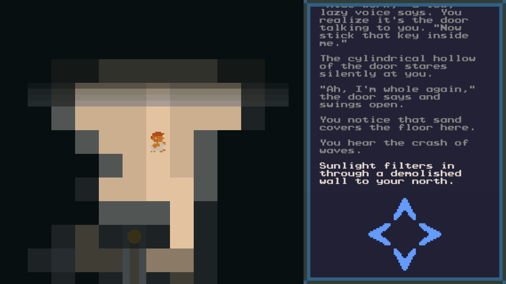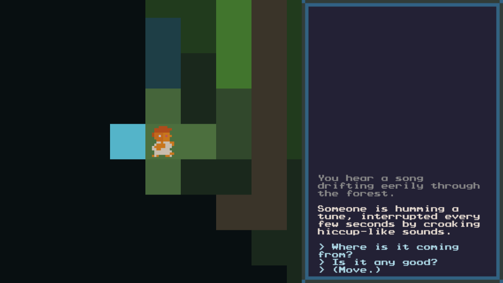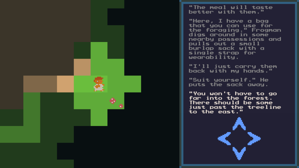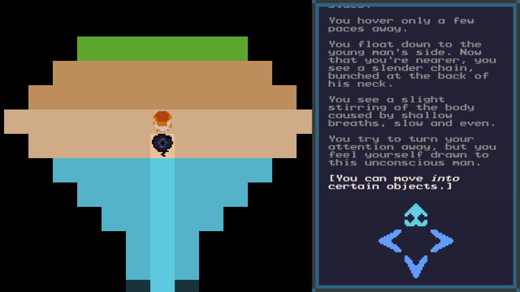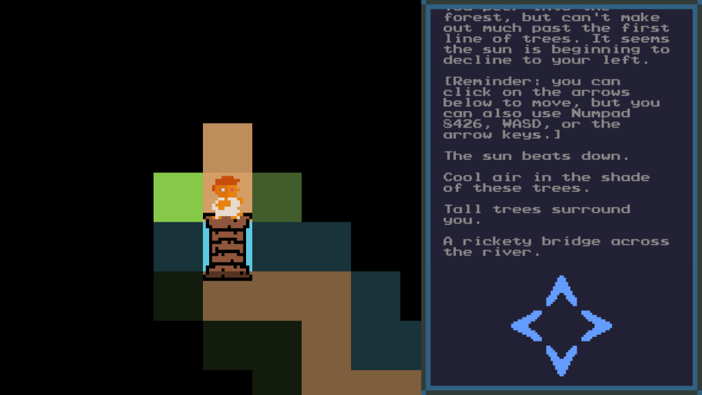 This game started from the idea to blend two game modes into one: it is both a digital book and an 8-bit adventure game. The game uses an interface for hypertext fiction inspired by the gamebook style of play featured in titles like Disco Elysium and other CRPGs, but the game is also influenced by adventure titles like The Legend of Zelda (1986) and Rogue (1980).