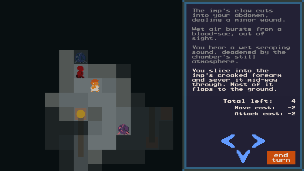 One of the most important developments early on in the project was the idea to use fog-of-war to obscure the environment as the player explored. Through playtesting, I discovered that this mechanic helped the player feel that they were uncovering the unknown, which greatly improved the feeling of exploration.